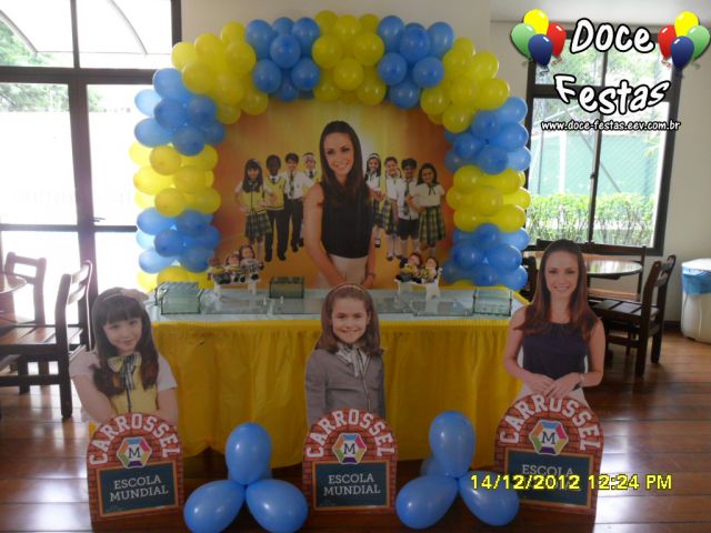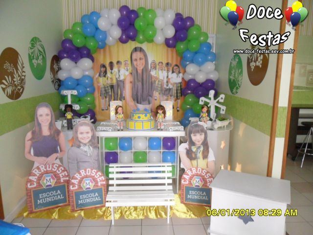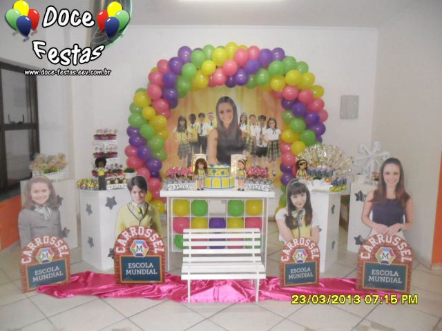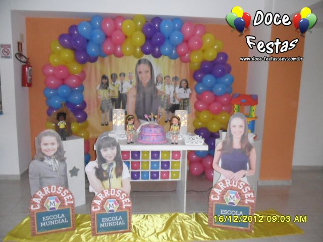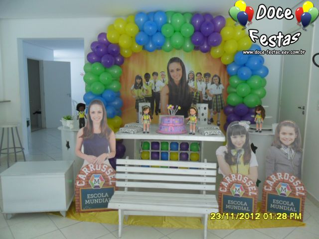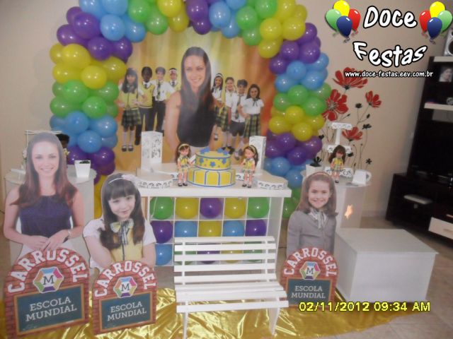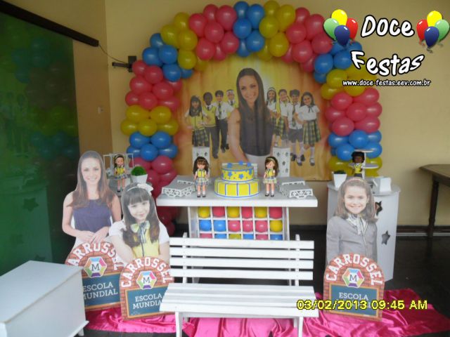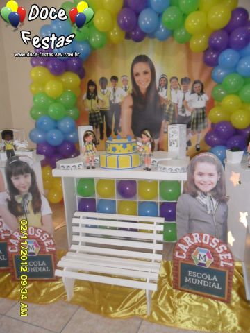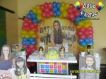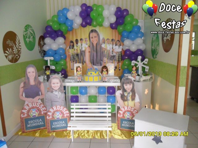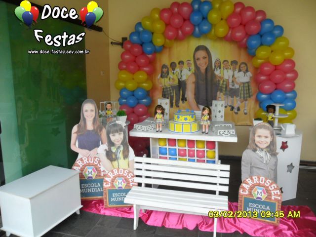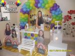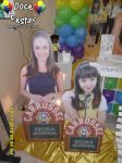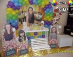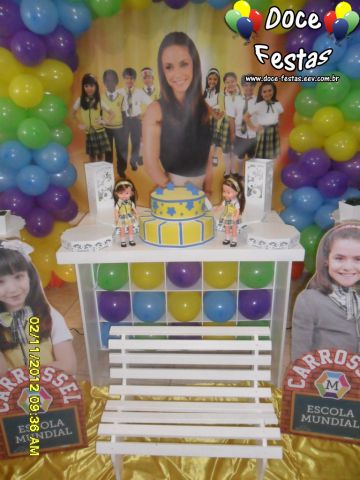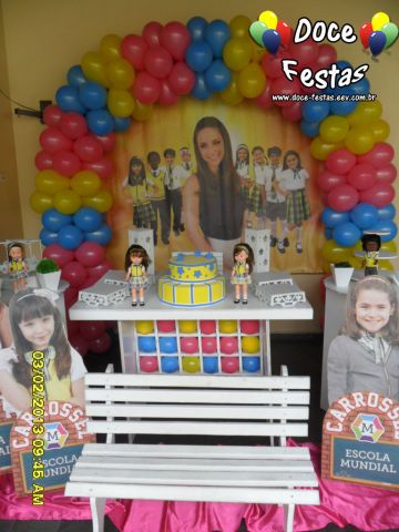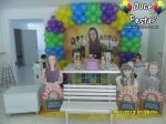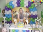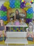 ARCO DE BALÕES, PAINEL NO TEMA, CUBOS ILUMINADOS, BOLO CENOGRAFICO COORDENADO COM A DECORAÇÃO, CENÁRIO DE CHÃO EM MDF E DEMAIS ITENS QUE COMPÕE O TEMA: BANDEJAS, PIRULITEIRO E BALEIRO EM MDF BRANCO.