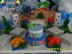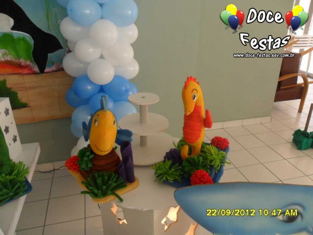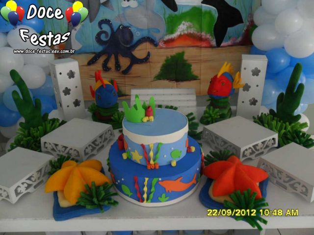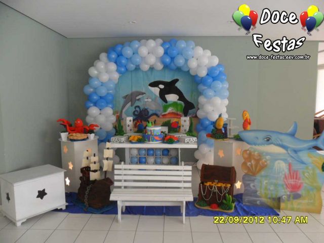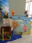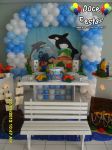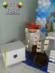 ARCO DE BALÕES, PAINEL NO TEMA, CUBOS ILUMINADOS, BOLO CENOGRAFICO COORDENADO COM A DECORAÇÃO, CENÁRIO DE CHÃO EM MDF E DEMAIS ITENS QUE COMPÕE O TEMA: BANDEJAS, PIRULITEIRO E BALEIRO EM MDF BRANCO.