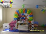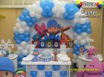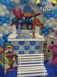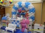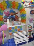 ARCO DE BALÕES, PAINEL NO TEMA, CUBOS ILUMINADOS, BOLO CENOGRAFICO COORDENADO COM A DECORAÇÃO, CENÁRIO DE CHÃO EM MDF E DEMAIS ITENS QUE COMPÕE O TEMA: BANDEJAS, PIRULITEIRO E BALEIRO EM MDF BRANCO.